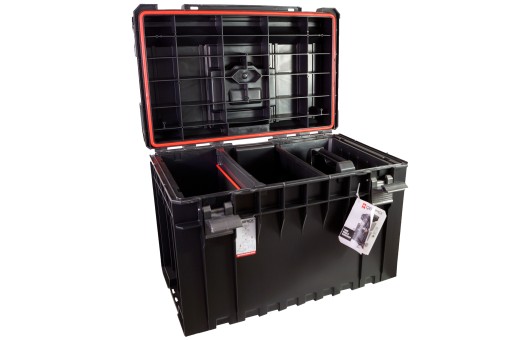 Skrzynka 200 wewnątrz posiada 4 małe kuwety oraz 2 duże, jak również 2 przegrody. Organizery można zamiennie wykorzystywać z tablicami narzędziowymi marki Patrol.