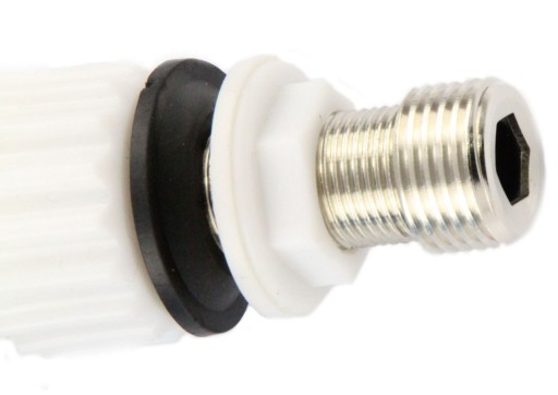 Zawór ma gwint 3/8" a po nakręceniu przejściówki 1/2"