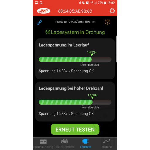 Ponadto nowa aplikacja może być również używana do dokładnego sprawdzania rozruchów (rozruszników, połączeń kablowych itp.) i procesów ładowania (alternator, kable itd.). W przypadku problemów oszczędza to długich poszukiwań.
