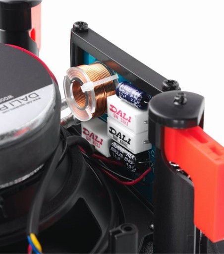 Normal/HF Tilt: Ustawienie dwóch głośników w dużej odległości jeden od drugiego może utrudnić uzyskanie dobrych parametrów sceny dźwiękowej. Konieczność poprawy odbioru dźwięku w takich warunkach sprawiła, że DALI uwzględniło w konstrukcji głośnika możliwość dodania 3 dB do wyjścia wysokiej częstotliwości, aby dźwięk docierał na większe odległości. Pozwoli to w wielu wypadkach na uzyskanie lepszej sceny dźwiękowej i to nawet w ekstremalnych warunkach.
