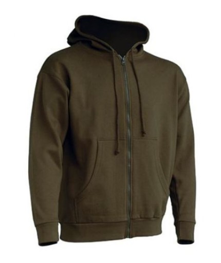 Bluza dresowa z kapturem zapinana na suwak. Ściągana sznurkiem w kolorze bluzy.