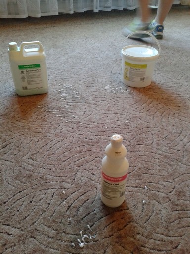 Przed przystąpieniem do czyszczenia należy zawsze poddać dywan próbnemu działaniu roztworu rozcieńczonego preparatu, aby sprawdzić trwałość barwy. Dywany wełniane oraz barwione nietrwałymi barwnikami należy poddać próbnemu działaniu preparatu, a następnie przepłukać płukanką do włókien i tekstyliów Fibre & Fabric Rinse B109zgodnie z instrukcja podaną na etykiecie. Rewelacyjne efekty w połączeniu z presprayem S789 Power Burst, S710 Trafficlean. Nie zostawia osadu, cytrusowy zapach, stabilna w wysokich temperaturach.