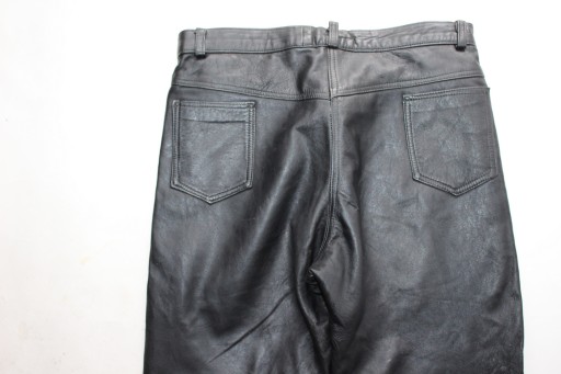 Spodnie zapinane na zamek i guzik, wewnątrz podszewka, 4 kieszonki, dobra jakość skóry- stan dosyć dobry- brak cypelka przy zamku.