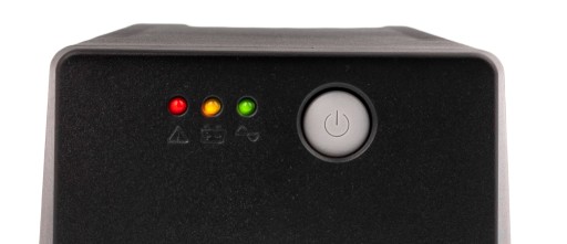 Mają pomóc Ci w obsłudze urządzenia. Zielona dioda świeci, gdy zasilacz czerpie energie z sieci AC. Żółta, migająca dioda sygnalizuje tryb pracy DC (czerpie energie z wbudowanego akumulatora). Czerwona dioda informuje o awarii lub złym podłączeniu.