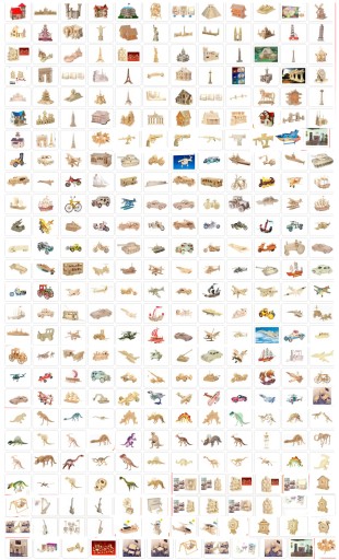 Na pozostałych aukcjach inne rodzaje drewnianych mebelków przestrzennych oraz budowli 3D.