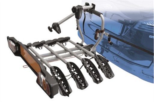 - Wsporniki do mocowania rowerów w komplecie - pierwszy rower montowany za pomocą pasków, drugi i trzeci za pomocą regulowanych ramion, czwarty połączony specjalnym ramieniem z trzecim.