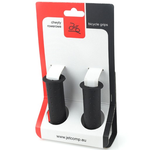 Chwyty kierownicy Jet G-96, przeznaczone do rowerów dziecięcych. Wykonane są z trwałej gumy. Zagwarantują dobry i pewny chwyt. Posiadają ograniczenie z jednej strony, które zapobiegnie ześlizgnięcia się ręki z kierownicy. Łatwa i prosta konserwacja. Ergonomiczny kształt zapewnia maksymalny komfort jazdy na rowerze