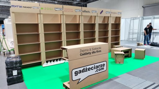 Przykładowe stoiska urządzone z naszych ekologicznych mebli z tektury: