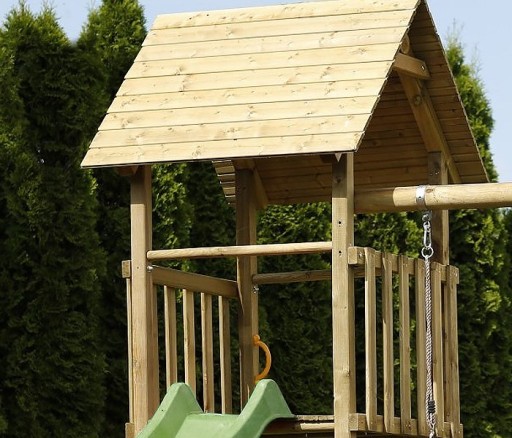 Wieża została wyposażona w piaskownicę, drabinkę i drewniany dach dzięki czemu zaraz po złożeniu jest gotowa do zabawy. Huśtawka oraz ślizg przymocowane do wieży zapewni dziecku szeroki uśmiech i bezpieczeństwo. Dzięki kompletowi okuć i instrukcji montażu staniesz się super bohaterem dla swoich dzieci.
