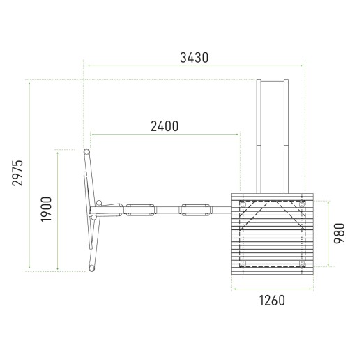 - Wymiary podłoża ze zjeżdżalnią: 297 x 343 cm