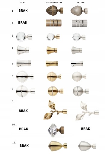 PONIŻEJ PRZEDSTAWIAMY DOSTĘPNE KOŃCÓWKI KARNISZY DO WYBORU