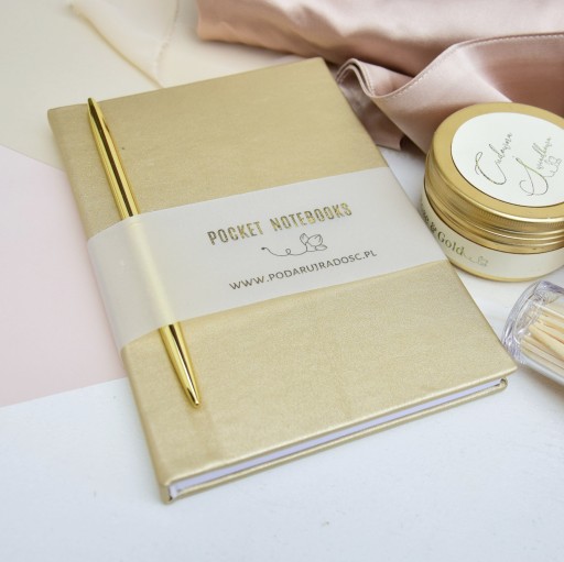 - złoty notes wraz ze złotym długopisem