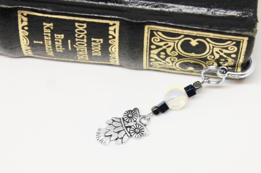 Elegancka zakładka do książki z zawieszką w kształcie sowy z dodatkiem hematytu i opalitu.