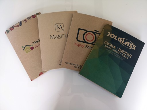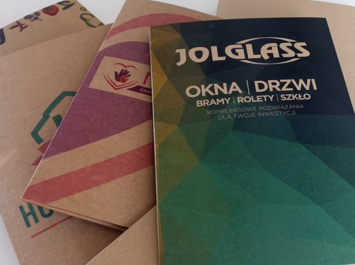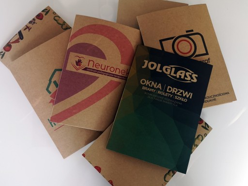 - druk pełno kolorowy przód i tył (po rozłożeniu teczka wewnątrz jest brązowa)