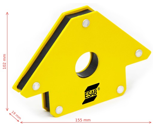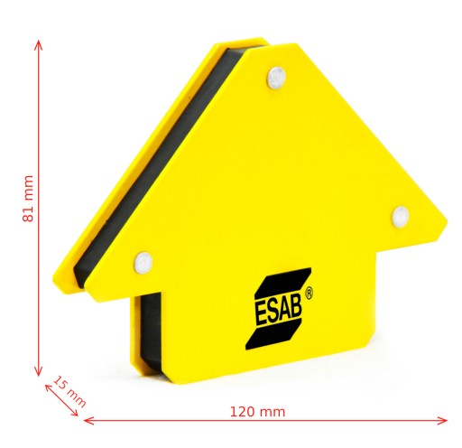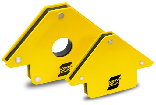 Zestaw 2 magnetycznych kątowników spawalniczych marki ESAB przeznaczony jest do podtrzymywania spawanego materiału w jednej płaszczyźnie lub pod kątem 135, 90 i 45 stopni.