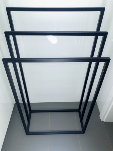 Wieszak jest wykonany z grubych 2mm profili 20x20mm, w całości zespawanych ze sobą.