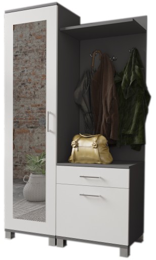 PONIŻEJ GARDEROBA W KOLORZE BIAŁO-GRAFITOWYM