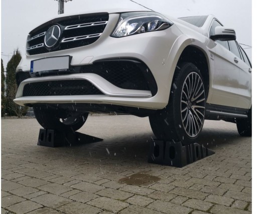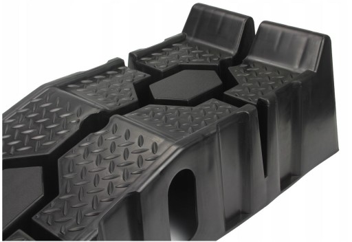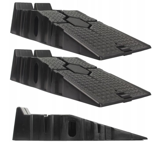 Rampy są wyposażone w wysoki próg zabezpieczający auto przed stoczeniem się do przodu. Dodatkowo całość rampy pokryta jest specjalną strukturą zwiększając przyczepność