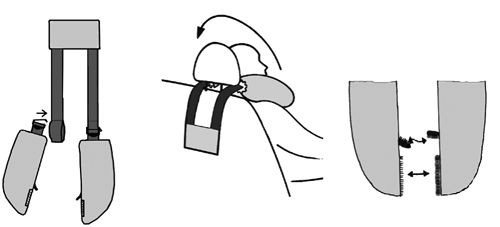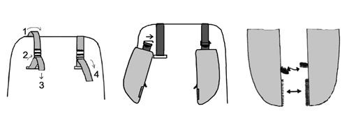 2. Paskami – w ten sposób zamontowaną poduszkę można wykorzystać w fotelikach rowerowych, przyczepkach rowerowych, wózkach inwalidzkich oraz nosidłach turystycznych. Paski załączone do zestawu przymocowujemy do otworów znajdujących się w foteliku, a następnie dopinamy do nich poduszeczki. Paski te możemy zamontować również do zagłówka.