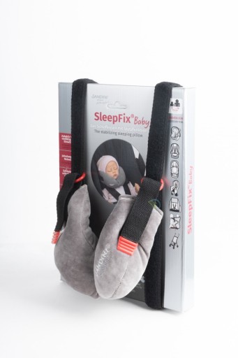 Poduszka stabilizująca SleepFix® XS może być stosowana w podróży samochodem, samolotem lub pociągiem i zawsze daje gwarancję, że dziecko może się zrelaksować i spokojnie zapaść w drzemkę. SleepFix utrzymuje głowę małego pasażera w pionie, w niezmiennej, bezpiecznej pozycji, uniemożliwiając jej pochylanie się na boki lub do przodu. Dzięki utrzymaniu głowy w pionie, ciało dziecka nie pochyla się do przodu i, zapięte pasami fotelika, pozostaje w optymalnej pozycji, co jest szczególnie istotne podczas wypadku drogowego. SleepFix® XS jest doskonałym gwarantem komfortu, ale przede wszystkim bezpieczeństwa. SleepFix® XS składa się z dwóch miękkich poduszek obejmujących szyję dziecka, pasków mocujących oraz przeciwwagi. Poduszki łączy się ze sobą pod szyją dziecka za pomocą rzepów. Aby wyjąć dziecko z fotelika samochodowego wystarczy rozpiąć rzepy i rozsunąć poduszki na boki. Dzięki temu, że są przymocowane do zagłówka, będą zawsze pod ręką, nie będą spadać na siedzenie, i nie trzeba będzie ich szukać. Starsze dziecko (używające produktu Basic), które poczuje się senne w czasie jazdy będzie mogło samo je bez problemu założyć na szyję i zapiąć pod brodą.