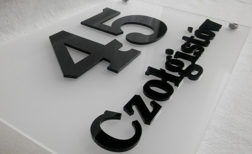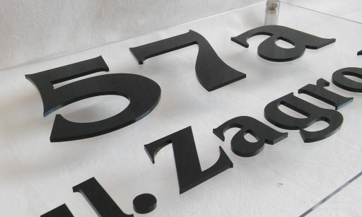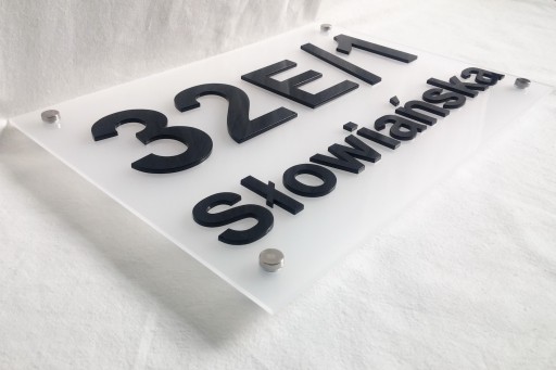 Tabliczka została wykonana z wysokiej jakości szkła akrylowego o łącznej grubości 6mm (3mm podkład + 3mm litery i cyfry).