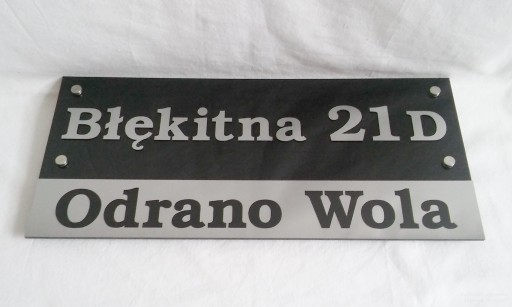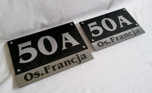 Jeśli jest potrzebny inny rozmiar albo wzór tabliczki to proszę o kontekt. Jest możliwość wygrawerowania napisów dowolną czcionką, proszę tylko o przesłanie wzoru czcionki. Możemy wykonać otwory montażowe w rozstawie co do milimetra (jeśli ktoś chce montować w fudze albo wykorzystać istniejące otwory itp.)
