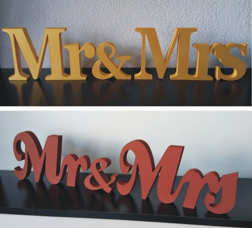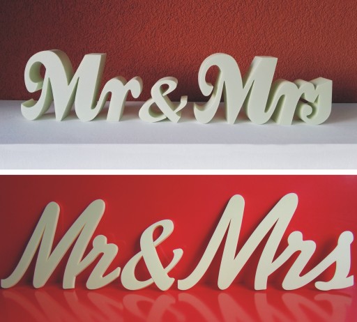 Napis dekoracyjny wykonany jest z lekkiego styroduru o grubości około 3cm, a następnie malowany ręcznie farbami akrylowymi. Taki napis doskonale nadaje się jako oryginalna dekoracja stołu weselnego, efektowna ozdoba na ślub oraz inne imprezy okolicznościowe, a także jako wystrój wnętrza domu czy biura. Super dodatek do sesji zdjęciowej !
