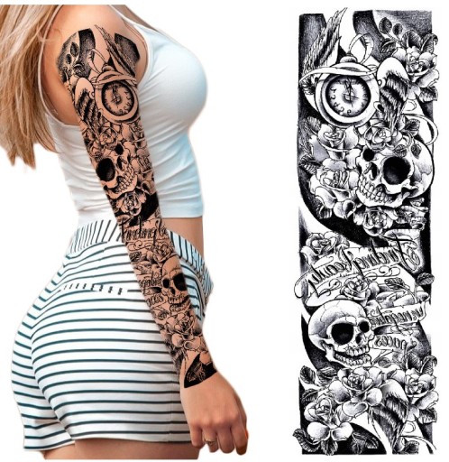 ВРЕМЕННАЯ ТАТУ ЧЕРЕП РУКАВ МНОГИЕ ДИЗАЙНЫ