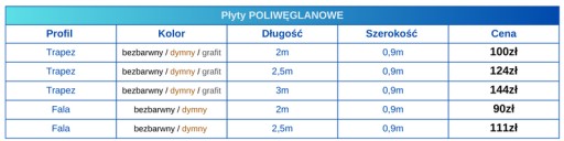 Oferujemy także płyty poliwęglanowe w innych rozmiarach oraz w innym kolorze: