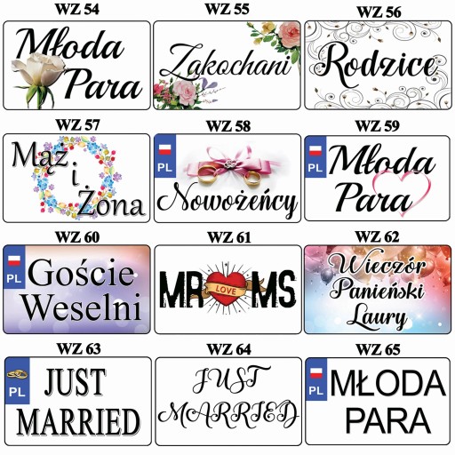 Przedmiotem aukcji jest piękna i wyrazista ślubna tablica rejestracyjna.