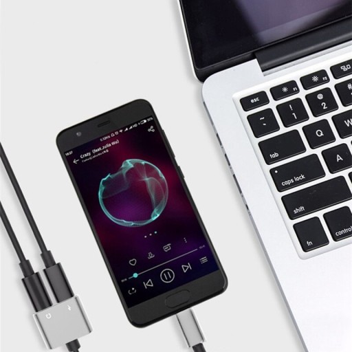 Kabel audio z USB-C do MiniJack 3,5mm i dodatkowym gniazdem USB-C, służącym do ładowania, przejściówka współpracuje z telefonami z gniazdem USB Type-C, a nie posiadającymi gniazda słuchawkowego MiniJack 3,5mm. Adapter pozwala ładować telefon i w tym samym czasie mieć podłączone słuchawki. Dzięki aluminiowej obudowie posiada większą odporność na uszkodzenia oraz jest przyjemniejszy w dotyku. Długość przewodu 10cm. Nie działa z telefonami Samsung, HTC oraz modele Xiaomi Mi6, Google Pixel 2 XL