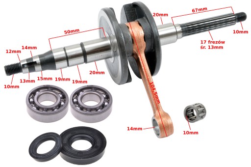 NOWY WAŁ Z ŁOŻYSKAMI DO SKUTERA 2T 13MM