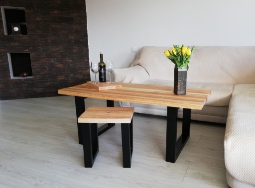 - Materiał: blat z litego drewna jesionowego (możliwy dąb lub stare drewno - zdjęcie - po ustaleniach) nogi z malowanego proszkowo profila stalowego