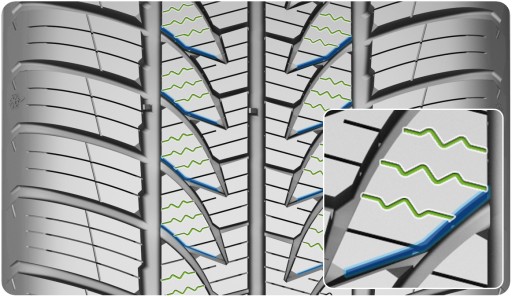 - Technologie All-Season zapewniają odpowiednie parametry opon zarówno w letnich jak i zimowych warunkach.
