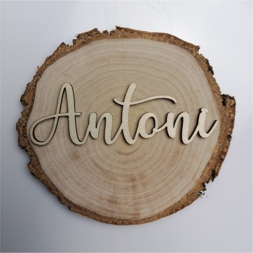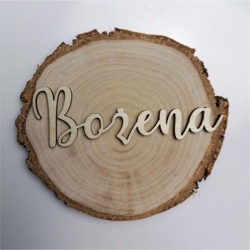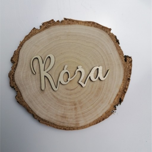 Drewniane winietki- wycięte imię stanowić mogą subtelną dekorację miejsc przy których zasiądą Wasi goście.