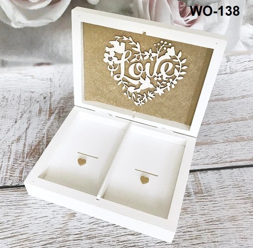 Pudełko na obrączkI wykonane z drewna , malowane na biało