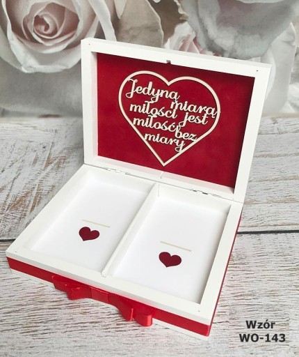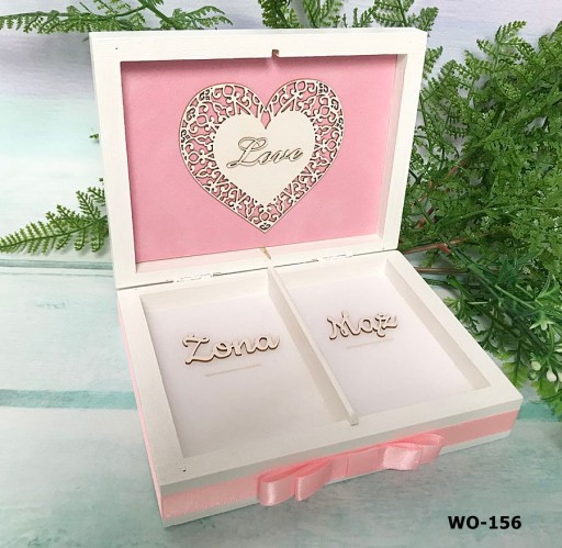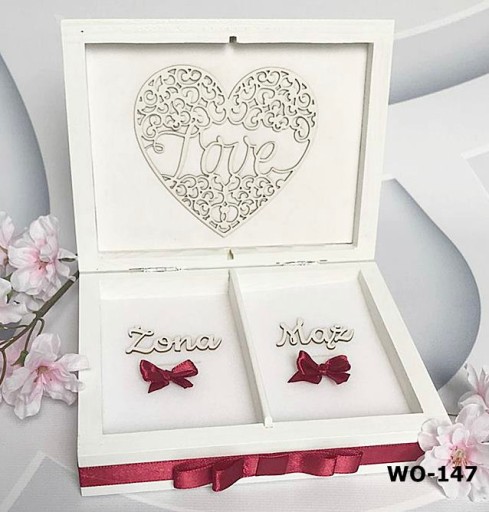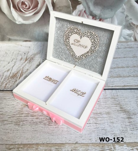 Pudełko na obrączkI wykonane z drewna , malowane na biało U118