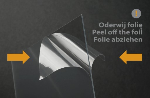 Plexi a tak dokładnie polistyren bezbarwny zabezpieczony jest z dwóch stron folią , którą należy zdjąć przed eksploatacją ramki.