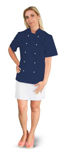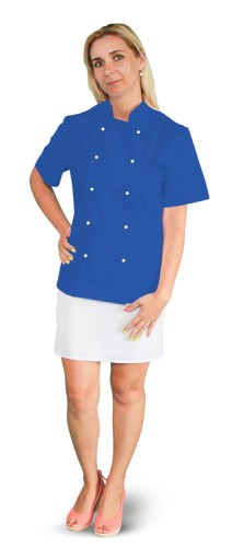 Fartuch Krystyna został stworzony z myślą o kobietach pracujących w gastronomii. Świetnie nada się dla samego szefa kuchni, jak i dla innych pracowników. Został uszyty z materiału wysokiej jakości - połączenia bawełny i poliestru. Dzięki temu nie tylko świetnie się układa, ale także jest bardzo wytrzymały. Fartuch posiada krótki rękaw. Zapinany jest na dwurzędowe guziki dostępne w pięciu kolorach.. Na klatce piersiowej posiada niewielką kieszeń na drobiazgi.