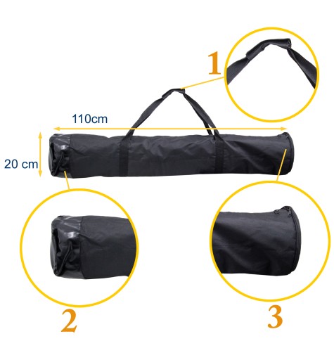 Wytrzymały materiał i pojemne wnętrze umożiwiają szybki transport statywów i parasolek, zapewniają też bezpieczne przechowywanie i ochronę przed kurzem, brudem, wilgocią, warunkami atmosferycznymi lub zniszczeniem.