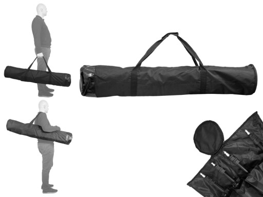 W zależności od potrzeby można do niego włożyć kilka statywów (4-5 sztuk w zależności od wielkości), statywy i parasolki. Pokrowiec ma uniwersalne zastosowanie - jest bardzo praktyczny i umożliwia wiele różnych konfiguracji zawartości.