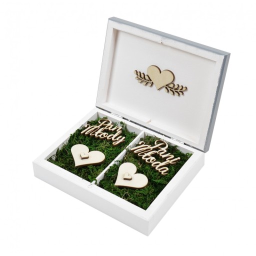 - Wymiary pudełka na obrączki: 160 x 120 x 40 mm,