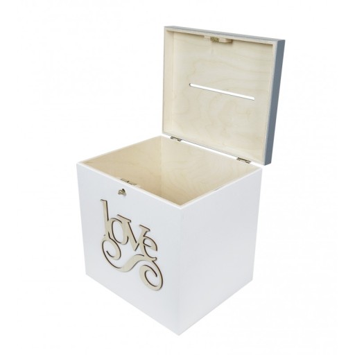 - utrzymany w rustykalnym stylu kufer na koperty z kluczykiem oraz wybranym motywem na front,