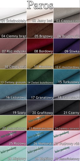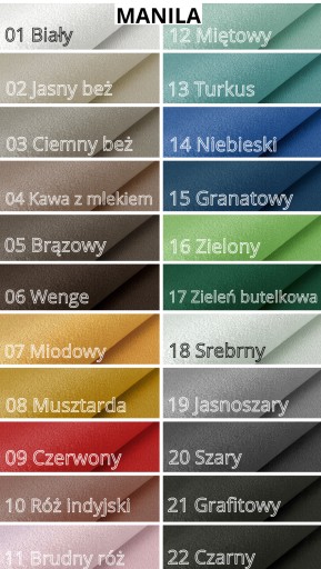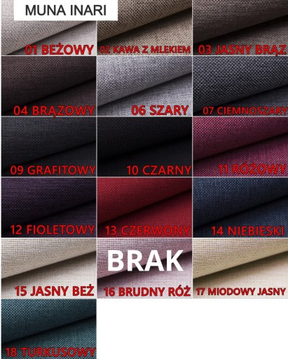 DOSTĘPNE KOLORY I TKANINY