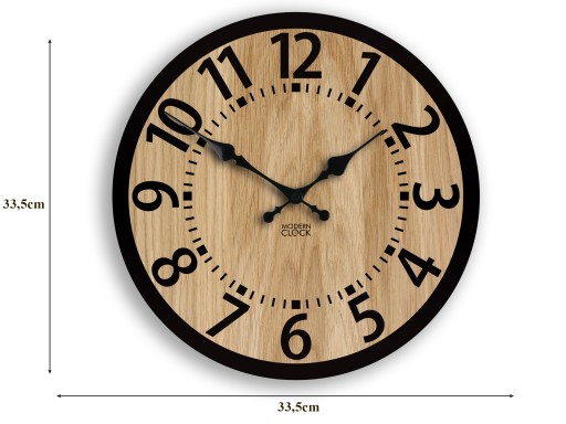 Zegar posiada tarczę (front 4 mm) z naturalnego drewna dębowego, podkładem jest płyta drzewna. Wykonany ze starannie przesegregowanego materiału wysokiej klasy. Zegar został zaimpregnowany naturalnym woskiem. Unikatowy i oryginalny dodatek do wnętrz