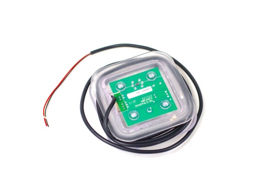 - Wskaźniki LED: Zielony (miga) = faza kalibracji, Zielony (stały) = czujnik działa w trybie gotowości (detekcji) Czerwona (migająca) = prealarm - przerywany dźwięk alarmu (cicho) do momentu ponownej detekcji do 40s Czerwony (szybkie miganie) = alarm + dźwięk ciągły alarm (głośny = 80 dB)