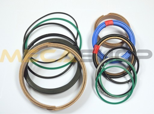 Zestaw uszczelnienień został skomponowany w oparciu o wieloletnie doświadczenie w zakresie serwisu maszyn Mecalac. Wszystkie uszczelniacze posiadają wysokie indeksy ciśnieniowe oraz pierścienie antywyciskowe, co dodatkowo podnosi ich wytrzymałość. Zestaw zawiera komplet elementów wymiennych (uszczelniacze, zgarniacz, taśmy prowadzące, podpórki oraz oringi).