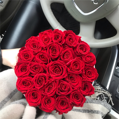 W pudełku umieszczone zostały wieczne róże, czyli żywe kwiaty poddane unikalnemu procesowi stabilizacji. Takie róże mogą zachować swój naturalny wygląd oraz miękkość nawet przez 2 lata. Nie wymagają podlewania ani żadnej pielęgnacji! :)