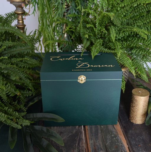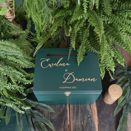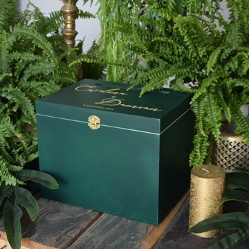 Большая ЗЕЛЕНАЯ Коробка для КОНВЕРТОВ + ОБРУЧАЛЬНЫХ КОЛЬЦ С ГРАВИРОВКОЙ