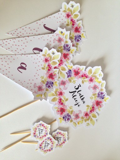 Tą śliczną girlandę i topper ze zdjęcia obok znajdziesz na pozostałych aukcjach.